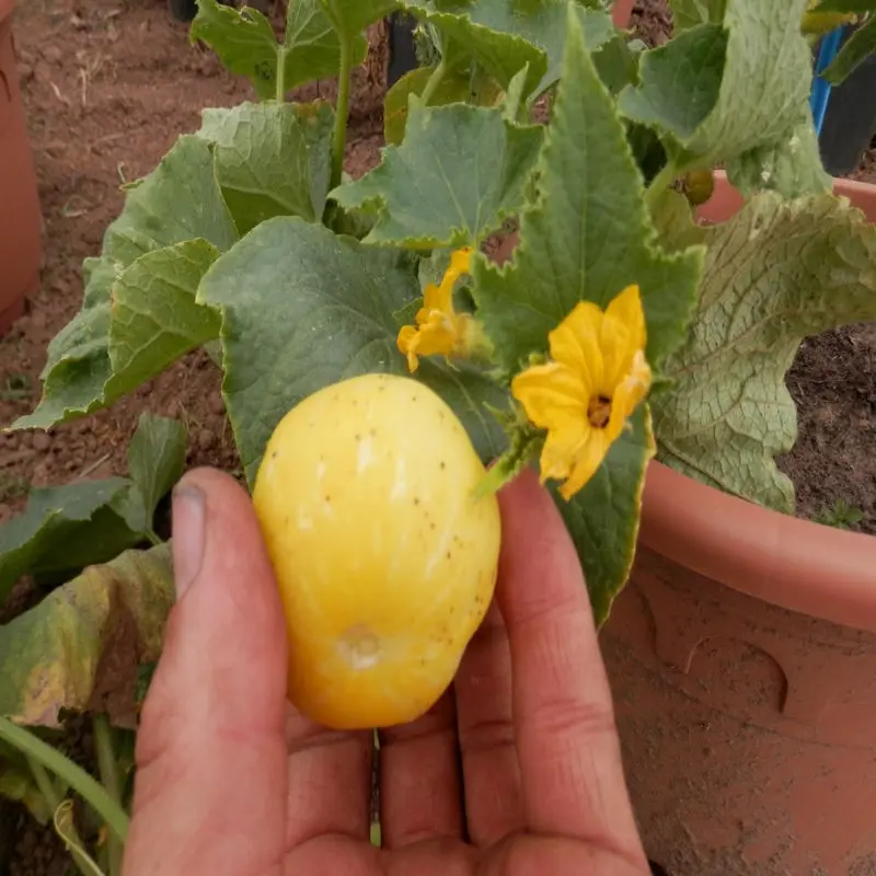 Stark rankende, verzweigende Pflanze mit eher kleinen Blättern und zierlichen Stängeln. Früchte in etwa zitronengroß, genussreif wenn die Farbe von grün auf zitronengelb umschlägt. Guter Gurkengeschmack. Ein Gartenzaun oder eine Rankhilfe erleichtern die Ernte. Hervorragende Alternative zu herkömmlichen Vespergurken.